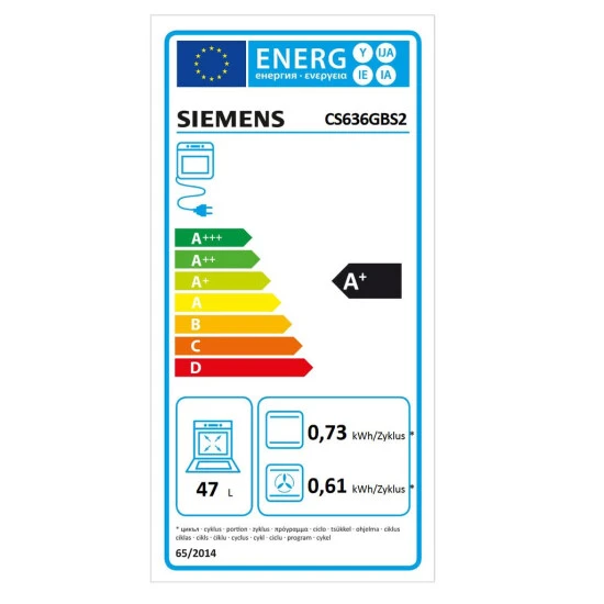 - Energieeffizienzklasse (gem. EU Nr. 65/2014): A+ (auf einer Energieeffizienzklassen-Skala von A+++ bis D)