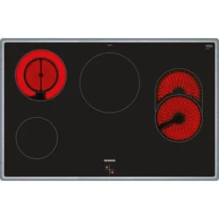 Design: Flachrahmen-Design Ausstattung: 4 highSpeed-Kochzonen, davon 1 Braeterzone 1 Zweikreis-Kochzone Umwelt und Sicherheit: 4 Restwaermeanzeigen Masse: min. Arbeitsplattenstaerke: 20 mm