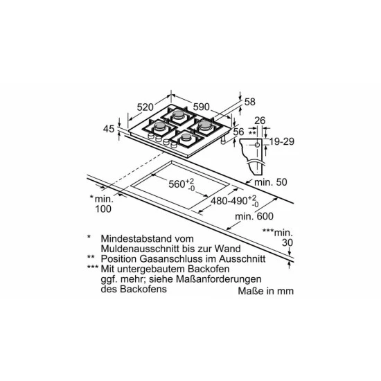 - Einbaumaße (HxBxT): 45 x 560 x 480-490 mm
