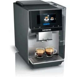 Siemens SDA Kaffeevollautomat TP705D01 gr/si Hersteller: Siemens SDABezeichnung: Kaffeevollautomat EQ.700Typ: TP705D01 gr/siBauart:vollautomatischAusführung:Kaffee/Espresso/CappuccinoHeizsystem:DurchlauferhitzerMax. Pumpendruck:19 barVolumen des Wassertanks:2,4 lFassungsvermögen Kaffeeteil (Tassen):2Fassungsvermögen Bohnenbehälter:350 gAnschlusswert:1500 WSpannung:220..240 VGrundfarbe:schwarzMit Display:jaMilchaufschäumung:jaKaffeepulverschacht:neinMit Wasserfilter:jaAutomatisches Reinigungssystem:jaHeißwasserfunktion:jaVerstellbares Mahlwerk:jaWählbare Kaffeemenge:jaKapselsystem:neinPadsystem:neinBauform:StandgerätBreite:309 mmHöhe:380 mmTiefe:467 mmSiemens SDA Kaffeevollautomat TP705D01 gr/si: weitere Details Geliefert wird: Siemens SDA Kaffeevollautomat EQ.700 TP705D01 gr/si, Verpackungseinheit: 1 Stück, EAN: 4242003859087