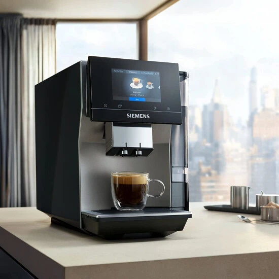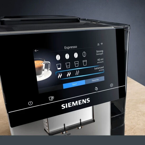 Der Siemens Kaffeevollautomat EQ.700 classic „TP705D01“ mit Internationalen Kaffeespezialitäten, einem intuitiven Full-Touch-Display und einem beleuchteten Kaffeeauslauf. Das brilliante Full-Touch-Display kombiniert mit einem einzigartigen Bedienungssystem – iSelect Display.