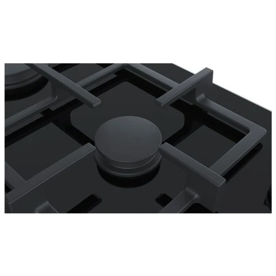 Gaskochfeld mit stepFlame Technology zur präzisen Steuerung der Flamme in 9 Stufen. Die moderne Glaskeramik-Oberfläche ist hitzebständig und reinigungsfreundlich. Der Topfträger ist spülmaschinenfest.