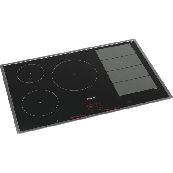 Profi-Ausstattung Bratsensor Plus mit 5 Temperaturstufen 1 varioInduktions-Kochzone 5 Induktions-Kochzonen Design: Flachrahmen-Design Dual LightSlider-Bedienung Komfort powerMove Plus quickStart reStart Topferkennung powerManagement Funktion Automatische Sicherheitsabschaltung Kindersicherung Wischschutzfunktion Timer countDown-Funktion Stoppuhr für Kochfeld Hauptschalter 17 Leistungs-Stufen Schnelligkeit: powerBoost-Funktion für alle Induktions-Kochzonen möglich powerBoost-Funktion für Pfannen Umwelt und Sicherheit: Energieverbrauchsanzeige 2-stufige Restwärmeanzeige je Kochzone Restwärmeanzeige je Kochzone Leistung und Größe: Kochzonen: 1 x Ø 180 mm, 1.8 kW (max. Powerstufe 3.1 kW) Induktion 1 x Ø 145 mm, 1.4 kW (max. Powerstufe 2.2 kW) Induktion 1 x Ø 240 mm, 2.2 kW (max. Powerstufe 3.7 kW) Induktion 1 x Ø 380 mmx210 mm, 3.3 kW (max. Powerstufe 3.7 kW) Induktion oder 2 x Ø 190 mm, 2.2 kW (max. Powerstufe 3.7 kW) Induktion Anschlusswert: 7,4 kW Technische Informationen Anschlusskabel (1,1 m) Anschlusskabel beigelegt in Verpackung Min. Arbeitsplattenstärke: 30 mm