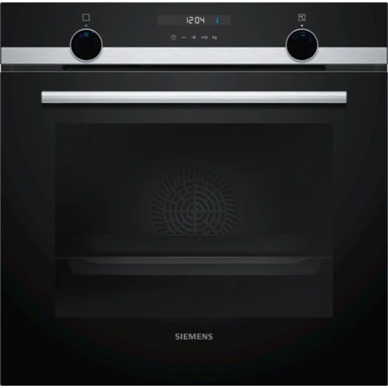 Siemens HB517ABS0. Ofengröße: Medium, Ofentyp: Elektrischer Ofen, Gesamtes Ofengarraumvolumen: 71 l. Produktfarbe: Schwarz, Edelstahl, Steuerung: Drehregler, Berührung, Steuerungsposition: Vorderseite. Energie-Effizienzklasse: A, Energieverbrauch (konventionell): 0,97 kWh, Energieverbrauch (erzwungene Konvektion): 0,81 kWh. Anzahl Lampe(n): 1 Lampen, Lampentyp: Halogen. Breite: 594 mm, Tiefe: 548 mm, Höhe: 595 mm