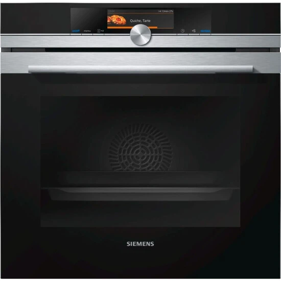 Backofentyp und Heizart Backofen mit 15 Beheizungsarten: 4D Heißluft, Heißluft sanft, Ober-/Unterhitze, Ober-/Unterhitze sanft, Umluft-Grill-System, Großflächengrill, Kleinflächengrill, Pizzastufe, coolStart, separate Unterhitze, Intensivhitze, Sanftgaren, Vorwärmen, Dörren, Warmhalten Temperaturregelung von 30 C – 300 C Schnellaufheizung Edelstahl-Lüfterrad Garraumvolumen: 71 l Komfort HomeConnect fähig über WLAN TFT-Touchdisplay Plus mit Klartext cookControl Plus – für vollautomatisches Braten Bratenthermometer Plus mit Mehrpunktmessung Backsensor – für vollautomatisches Backen LED-Innenbeleuchtung, Mehrebenen-LED-Innenbeleuchtung, abschaltbar Backofentür mit softMove für gedämpftes Öffnen und Schließen. EU Nr. 65/2014) : A+ (auf einer Energieeffizienzklassen-Skala von A+++ bis D) Energieverbrauch pro Zyklus im konventionellen Modus: 0.87 kWh Energieverbrauch pro Zyklus im Umluft-Modus: 0.69 kWh Zahl der Garräume: 1 Wärmequelle: elektrisch Innenraumvolumen: 71 l sehr geringe Türtemperatur Kindersicherung mit verriegelbarer Backofentür Sicherheitsabschaltung Restwärmeanzeige Starttaste Türkontaktschalter Technische Info: Länge Netzkabel: 120 cm Gesamtanschlusswert Elektro: 3.6 kW Gerätemaße (HxBxT) : 595 x 594 x 548 mm Nischenmaße (HxBxT) : 595 mm x 560 mm x 550 mm „Maße und Einbauhinweise zu diesem Gerät gemäß technischer Zeichnung beachten“