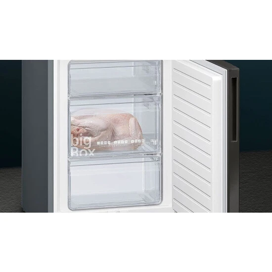 Obst und Gemüse bleiben länger knackig frisch: hyperFresh. Ob Aprikosen, Brokkoli oder Feldsalat – in der hyperFresh Schublade lässt sich der Feuchtigkeitsgehalt auf das Eingelagerte abstimmen und einfach manuell per Schieberegler einstellen. So bleibt alles länger knackig und frisch. Geringere Eisbildung spart Energie und Arbeit beim Abtauen – lowFrost. Das wenige Eis, das sich bildet, wird gleichmäßig verteilt, sodass das Abtauen schnell und einfach erfolgt und der Energieverbrauch Ihres Kühlschranks niedrig bleibt. Minimieren Sie die Arbeit beim Abtauen mit lowFrost. Beleuchtet den Kühlschrank für einen guten Überblick – LED-Beleuchtung. Dank der flächenbündig eingebauten LED-Beleuchtung wird der Innenraum Ihres Kühlgeräts angenehm und gleichmäßig beleuchtet, ohne zu blenden. Die LED-Lichter haben eine lange Lebensdauer und sind energiesparend. Sichere Lagerung für kleine und große Flaschen – bottleRack. Keine Flaschen rollen mehr vor und zurück, wenn Sie Ihren Kühlschrank öffnen. Große und kleine Flaschen sowie Dosen werden sicher in dem herausnehmbaren bottleRack aus Edelstahl gelagert – so bleiben Ihre Flaschen in Reichweite und werden sicher verstaut. Bewegliche Glasablagen erleichtern das Einlagern und Entnehmen von Lebensmitteln – easyAccess Glasablagen. Danke der easyAccess Glasablagen behalten Sie Ihre Lebensmittel bestens im Blick und in Reichweite. Für mehr Komfort beim Einlagern und Entnehmen von Lebensmitteln lassen sich die Glasablagen jetzt auf Profilschienen bequem bis zur Mitte herausziehen. Auch voll beladene Ablagen gleiten leichtgängig und kippsicher. Die rahmenlosen Ablagen bestehen aus hochwertigem robusten Glas. Damit haben Sie die optimale Übersicht, und nichts bleibt verborgen. Schnelles Kühlen von Lebensmitteln – superCooling. Mit superCooling können Sie die Temperatur Ihres Kühlschranks für eine eingestellte Zeit senken, um frische Lebensmittel schnell zu kühlen. Damit wird ein unerwünschter Temperaturanstieg der bereits gekühlten Lebensmittel verhindert. Extragroßer Lagerraum für die flexible Aufbewahrung von Gefriergut – bigBox. Eine ganze Lammkeule, mehrere Pizzen oder eine große Gefrierdose mit frisch gepflückten Blaubeeren – die bigBox bietet extragroßen Lagerraum für große Lebensmittel. Mit nur wenigen Handgriffen wird alles verstaut und gestapelt. Und wenn Sie noch mehr Platz brauchen, können alle Schubladen und Ablagen problemlos entfernt werden, sodass Ihnen der gesamte Raum im Gefrierschrank zur Verfügung steht. Immer die richtige Temperatur – freshSense. Schon geringste Temperaturschwankungen, beispielsweise durch Sonneneinstrahlung auf die Kühl-Gefrier-Kombination, können die Bedingungen im Kühlschrank beeinträchtigen – und damit auch die Frische Ihrer Lebensmittel. Um das zu vermeiden, misst freshSense die Innen- und Außentemperatur des Kühlschranks und erkennt, wenn sich die Umgebungsbedingungen ändern. Sobald eine Änderung erkannt wird, steuert das Kontrollsystem sofort gegen, damit Ihre Lebensmittel möglichst lange frisch bleiben. Hält Fisch und Fleisch bis zu 2x länger frisch: hyperFresh <>0 °C. Die hyperFresh <>0 °C Schubladen sorgen dafür, dass frisches Fleisch, frische Wurstwaren und frischer Fisch bis zu 2x länger frisch bleiben. Für diese hervorragenden Frischhaltebedingungen ist die Temperatur in den Fächern um ca. 2-4 °C kühler als im übrigen Kühlraum. Auch vermeiden die separaten Fächer unangenehme Geruchsübertragungen. Immer zuverlässig – das multiAlarm-System. Das multiAlarm-System benachrichtigt Sie optisch und akustisch, sobald die Temperatur steigt, beispielsweise weil die Tür offen gelassen wurde. Bruchsicher und reinigungsfreundlich – die safetyGlas-Ablagen. Alle Glasablagen bestehen aus extrastarkem, reinigungsfreundlichem Sicherheitsglas. Fällt mal etwas um, wird die verschüttete Flüssigkeit eingedämmt und läuft nicht durch den gesamten Kühlraum. Urlaubsschaltung Die Urlaubsschaltung sorgt für energiesparende Kühlung, wenn Sie nicht zu Hause sind.