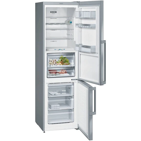 Die Siemens coolFlex Kühl-Gefrier-Kombination mit hyperFresh Technologie für bis zu 3x länger frisches Obst und Gemüse sowie Full noFrost, um nie wieder abzutauen. Schnelles Kühlen von Lebensmitteln – superCooling. Mit superCooling können Sie die Temperatur Ihres Kühlschranks für eine eingestellte Zeit senken, um frische Lebensmittel schnell zu kühlen. Damit wird ein unerwünschter Temperaturanstieg der bereits gekühlten Lebensmittel verhindert. Sorgt für gleichmäßige Kühlung auf allen Ebenen – das multiAirflow-System. Das multiAirflow-System zirkuliert die Luft gleichmäßig im Kühlfach – für eine konstante Temperatur auf allen Ebenen. Frisch eingelagerte Lebensmittel werden schneller heruntergekühlt. Und die Qualität frischer Lebensmittel wird besser erhalten. Sichere Lagerung für kleine und große Flaschen – bottleRack. Keine Flaschen rollen mehr vor und zurück, wenn Sie Ihren Kühlschrank öffnen. Große und kleine Flaschen sowie Dosen werden sicher in dem herausnehmbaren bottleRack aus Edelstahl gelagert – so bleiben Ihre Flaschen in Reichweite und werden sicher verstaut. Nie wieder abtauen – noFrost. Sie müssen Ihr Gefrierfach nie wieder abtauen, damit Ihr Gefriergut einwandfrei bleibt und Ihr Gerät energieeffizient läuft. Die noFrost-Technologie umfasst ein Lüftungssystem, das Feuchtigkeit aus dem Gefrierfach führt. Auf diese Weise bleibt die Luft trocken. Dies verhindert zuverlässig die Bildung von Eis an den Geräteinnenseiten oder von Reif auf den Lebensmitteln – das spart Zeit und den Arbeitsaufwand für das Abtauen. Immer die richtige Temperatur – freshSense. Schon geringste Temperaturschwankungen, beispielsweise durch Sonneneinstrahlung auf die Kühl-Gefrier-Kombination, können die Bedingungen im Kühlschrank beeinträchtigen – und damit auch die Frische Ihrer Lebensmittel. Um das zu vermeiden, misst freshSense die Innen- und Außentemperatur des Kühlschranks und erkennt, wenn sich die Umgebungsbedingungen ändern. Sobald eine Änderung erkannt wird, steuert das Kontrollsystem sofort gegen, damit Ihre Lebensmittel möglichst lange frisch bleiben. Bewegliche Glasablagen erleichtern das Einlagern und Entnehmen von Lebensmitteln – easyAccess Glasablagen. Danke der easyAccess Glasablagen behalten Sie Ihre Lebensmittel bestens im Blick und in Reichweite. Für mehr Komfort beim Einlagern und Entnehmen von Lebensmitteln lassen sich die Glasablagen jetzt auf Profilschienen bequem bis zur Mitte herausziehen. Auch voll beladene Ablagen gleiten leichtgängig und kippsicher. Die rahmenlosen Ablagen bestehen aus hochwertigem robusten Glas. Damit haben Sie die optimale Übersicht, und nichts bleibt verborgen. Bedienen Sie Ihren Kühlschrank von wo Sie wollen, wann Sie wollen – mit der Home Connect App. Eine vernetzte Welt voller aufregender Möglichkeiten dank der WLAN-fähigen Siemens Hausgeräte und Home Connect. Erleben Sie die Zukunft schon heute: Mit Home Connect werden Aufgaben des Alltags einfacher und angenehmer. Denn Home Connect verbessert das Leben: Dank neuester Technologie verbringen Sie mehr Zeit mit dem, was Sie möchten und weniger mit dem, was Sie müssen. Entdecken Sie die Möglichkeiten. Für das Außergewöhnliche im Leben. Edelstahltüren weniger putzen – antiFingerprint. Die hochwertigen Edelstahlflächen der Kühlschranktüren sind mit einer Spezialbeschichtung überzogen: Die antiFingerprint-Beschichtung macht Schluss mit den lästigen Fingerabdrücken auf dem Edelstahl. Statten Sie Ihren Kühlschrank zusätzlich mit WLAN-Funktionen aus – Home Connect Kommunikationsmodul (als Zubehör erhältlich). Das Home Connect Kommunikationsmodul bietet Ihnen die Möglichkeit, Ihren WLAN-fähigen Kühlschrank mit Home Connect aufzurüsten. Nach der Installation können Sie Ihren Kühlschrank von unterwegs steuern und im Blick behalten. Bruchsicher und reinigungsfreundlich – die safetyGlas-Ablagen. Alle Glasablagen bestehen aus extrastarkem, reinigungsfreundlichem Sicherheitsglas. Fällt mal etwas um, wird die verschüttete Flüssigkeit eingedämmt und läuft nicht durch den gesamten Kühlraum. Hält Ihre Lebensmittel bis zu 3x länger frisch und knackig – hyperFresh premium 0°C. Die hyperFresh Premium 0°C Schubladen – eine für Obst und Gemüse und eine für Fisch und Fleisch – kombinieren optimale Feuchtigkeitsregulierung und konstante Temperatur, um die Frische bis zu 3x länger zu bewahren. Obst und Gemüse bleibt knackig und reich an Vitaminen, während das separate Fach für Fisch und Fleisch verhindert, dass Gerüche auf andere Lebensmittel übertragen werden. Immer zuverlässig – das multiAlarm-System. Das multiAlarm-System benachrichtigt Sie optisch und akustisch, sobald die Temperatur steigt, beispielsweise weil die Tür offen gelassen wurde. Urlaubsschaltung Die Urlaubsschaltung sorgt für energiesparende Kühlung, wenn Sie nicht zu Hause sind. Steuern und bedienen Sie Ihren Kühlschrank von unterwegs – mit der Home Connect App (Android und iOS). Es gibt laufend technologische Innovationen. Schritt für Schritt werden immer mehr Geräte besser vernetzt und intelligenter. Mit WLAN-fähigen Siemens Hausgeräten und Home Connect erreicht diese Entwicklung jetzt auch Ihr Zuhause. Die Synergie WLAN-fähiger Geräte, intelligenter Software und einer intuitiven App bietet eine ganze Bandbreite an Optionen. Einige vereinfachen die Arbeit, andere eröffnen völlig neue Horizonte – alle machen den Alltag so effizient und komfortabel wie nie zuvor. Und Sie haben mehr Zeit für all die Dinge, die Ihnen wirklich Spaß machen. Für das gewisse Etwas im Leben.