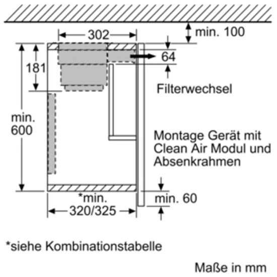 Der Absenkrahmen läßt die Flachschirmhaube komplett im Oberschrank verschwinden