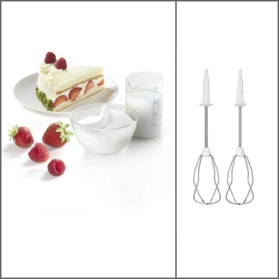 - Ausgestattet mit zwei hocheffizienten Turbo-Rührbesen und zwei Edelstahl-Knethaken für optimales Schlag-und Rührergebnis