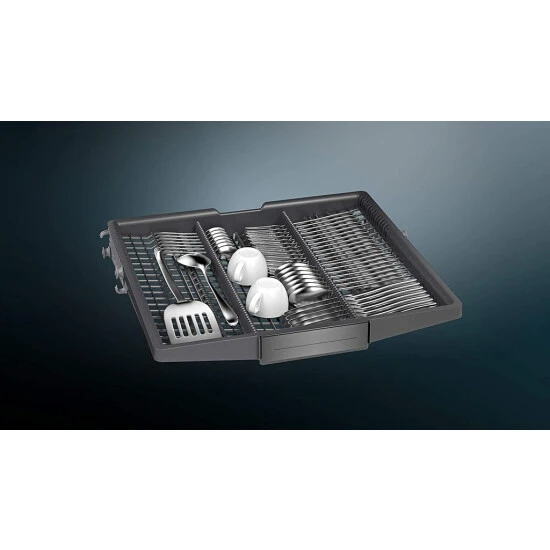 Hervorragender Zeolith®-Geschirrspüler mit einem intensiven Reinigungsbereich im Oberkorb, der glassZone, welche auch für empfindliche Gläser geeignet ist. Durch varioScharnier auch ideal für spezielle Einbausituationen. Für eine bis zu dreimal so schnelle Programmlaufzeit, jederzeit und von überall zuschaltbar dank Home Connect App und varioSpeed Plus on demand. Bis zu dreimal so schnell, genauso gründlich sauber und trocken: Mit varioSpeed Plus on demand verkürzen Sie die Laufzeit eines Programms. Den Spül–Turbo können Sie auch auch bei bereits laufendem Spülprogramm jederzeit zuschalten – mit der Home Connect App sogar von unterwegs. Für hohen Bedienkomfort, wirksamen Gläserschutz und schnelles Be- und Entladen – flexComfort Körbe und Schubladen. Ob Teller, Töpfe, Tassen oder Weingläser – in Siemens flexComfort Körben findet jedes Geschirrteil schnell seinen Platz. Dank neuer Sicherheitsausstattung können Sie jetzt auch ihre besten Gläser bedenkenlos in Ihren Geschirrspüler stellen. Zudem erleichtern Ihn die neuen reibungsarmen Laufräder das Be- und Entladen. Ansprechende Beleuchtung des Innenraums Ihres Geschirrspülers – emotionLight. Zwei LED-Lichter oben am Türrahmen tauchen den gesamten Innenraum des Geschirrspülers und Ihr Geschirr in stimmungsvolles blaues oder weißes Licht. Immer das Wichtigste im Blick mit der elegant blauen Lichtleiste als Betriebsanzeige – sideLight. Betriebsanzeige in eleganter Optik: Mit dem sideLight erkennen Sie sofort, ob das Spülprogramm noch läuft. Während des Betriebs leuchtet die blaue Lichtleiste den linken Möbelspalt neben dem Geschirrspüler aus. Für gehobene Ansprüche bei Geräten mit varioScharnier und ideal für den Hocheinbau. Optimaler Einbau in Ihre Küche – varioScharnier. Küchen können ganz unterschiedlich sein. varioScharnier bietet dabei optimale Flexibilität beim Einbau Ihres Geschirrspülers. Bei Geräten mit varioScharnier verschiebt sich die voll integrierte Möbelfront beim Öffnen des Geräts leicht nach oben. So lassen sich größere Spaltmaße zwischen den Fronten der Küchenelemente vermeiden. Außerdem werden Kollisionen mit Sockel und Bodenwanne verhindert. varioScharnier ermöglicht den Einbau Ihres Geschirrspülers mit einer Sockelleiste von nur 5 cm. Wählen und starten Sie Ihr Spülprogramm bequem über die Home Connect App – Fernsteuerung. Mit der Home Connect App können Sie problemlos Programme und Funktionen auswählen und Ihren Geschirrspüler jederzeit von unterwegs starten. So haben Sie die Gewissheit, dass Ihr Geschirr genau dann sauber und trocken ist, wenn Sie es brauchen. Behalten Sie Ihren Geschirrspüler stets im Blick – Remote Monitoring. Mit Home Connect können Sie jederzeit nach Ihrem Geschirrspüler von Siemens sehen – egal, wo Sie sich gerade befinden. Sie müssen nicht mehr persönlich nachsehen, ob das Gerät noch läuft. Wenn das Geschirr sauber und trocken ist, erhalten Sie eine Push-Benachrichtigung von der Home Connect App. Mit der Home Connect App finden Sie immer das richtige Spülprogramm – easyStart. Mit easyStart bedienen Sie Ihren Geschirrspüler jetzt leichter denn je. Beantworten Sie hierfür einfach ein Paar Fragen zu Ihren Spülpräferenzen und der Art des Geschirrs mittels Home Connect App. Die App empfiehlt Ihnen dann automatisch das richtige Programm und Sie können es auch von unterwegs starten. Sie werden benachrichtigt, wenn die Spülmaschinentabs knapp werden – Tab Counter. Der Tab Counter bietet Komfort und Entspannung. Geben Sie in Ihrer Home Connect App einfach an, wie viele neue Spülmaschinentabs Sie gekauft haben. Auf Ihrem Smartphone können Sie dann jederzeit und von unterwegs einsehen, wie viele Tabs noch vorrätig sind. Sollte Ihr Vorrat zur Neige gehen, werden Sie automatisch daran erinnert, neue Tabs zu kaufen. Für eine sichere und schonende Reinigung Ihrer wertvollsten Gläser – glassZone. Ganz sicher sauber: Dank der neuen glassZone können Sie jetzt selbst ihre wertvollsten Gläser beruhigt in den Geschirrspüler stellen. Sechs integrierte Düsen sorgen für eine kontinuierliche, aber sanfte Wasserzufuhr und ermöglichen damit eine gründliche Reinigung, ohne sensible Materialien zu beschädigen. Zusätzlich schützen integrierte Anlageflächen aus speziellem Antirutsch-Material vor mechanischer Beanspruchung und geben Ihren Gläsern einen sicheren Halt. Oberkorb mit drei höhenverstellbaren Stufen – rackMatic. rackMatic erleichtert das Be- und Entladen, insbesondere bei großen Töpfen oder Tellern. Der in der Höhe verstellbare Oberkorb lässt sich problemlos dreistufig verstellen, um sich den individuellen Platzbedürfnissen anzupassen. Funktioniert auch im beladenen Zustand. Unsere Profis analysieren Probleme über Fernzugang – remoteDiagnostics. Sollte es einmal Probleme mit Ihrem Geschirrspüler geben, bietet Ihnen Home Connect die bequeme Möglichkeit der Ferndiagnose. Mit Ihrer Erlaubnis greift ein Siemens Kundendienstmitarbeiter dann auf das Gerät zu und ermittelt die potentielle Fehlerquelle. Wenn sich diese aus der Ferne nicht beheben lässt und es doch zu einem persönlichen Kundendienstbesuch kommt, ist unser Techniker optimal vorbereitet und hat direkt die benötigten Ersatzteile für Sie dabei. Kombinieren Sie Ihre persönlichen Programme und Optionen auf einer Taste. Für eine schnelle, bequeme und individuelle Programmauswahl – Favoriten Taste. Ihre persönlichen Champions mit einem Klick: Mit der Favoriten Taste wird ihr Geschirrspüler noch individueller. Hinterlegen Sie dort einfach ihre beliebteste Kombination aus Spülprogramm und Optionen. Sie können diese bequem per Knopfdruck oder über die Home Connect App aufrufen. Das aquaStop®-System verhindert jede Art von Wasserschaden – sei es durch eine undichten Zulaufschlauch oder am Gerät selbst. Sobald eine Undichtigkeit erkannt wird, stellt aquaStop® den Wasserzulauf direkt an der Armatur ab. Effizient, langlebig und leis