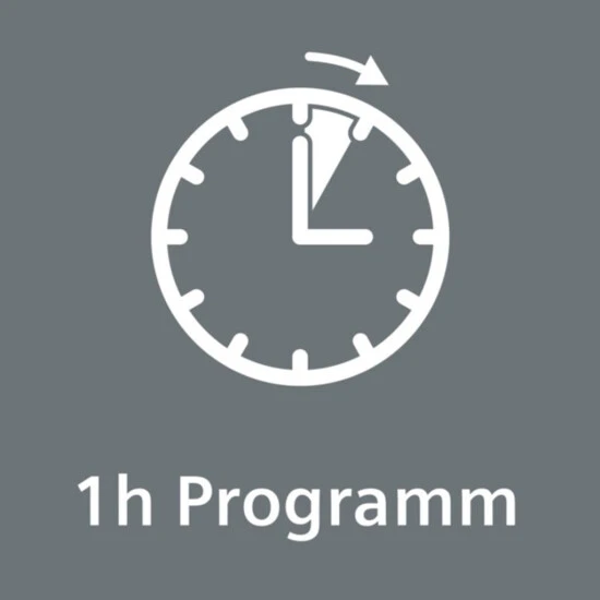 - 1h Programm: schnell und effektiv in einer Stunde zu glänzenden Spül- und Trocknungsergebnissen.