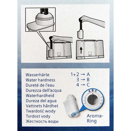 B. Chlor, damit sich die natürlichen Aromen im Kaffee besser entfalten können Aroma-Ring zur Einstellung der optimalen Wasserhärte für maximalen Kaffeegenuss Geeignet für alle Kaffeevollautomaten der EQ Reihe, sowie Einbauvollautomaten Inhalt: 1 Wasserfilter