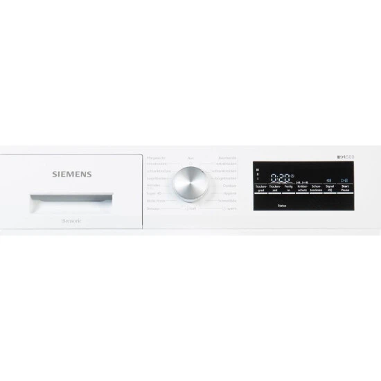 Spezialprogramme: Wolle finish, Schnell/Mix, Outdoor, Zeitprogramm warm, Zeitprogramm kalt, Hygiene, Dessous, Super 40 und shirts 15, Optionen: Knitterschutz 120 Min. am Programmende, touchControl-Tasten: Schontrocknen, Signal, Knitterschutz, Fertig in, Programmdauer, Trocknungsgradfeinjustage und 24 h Fertig in, AutoDry: feuchtegesteuerte Trocknungsprogramme, Programmwähler für feuchtegesteuerte-, Zeit- und Spezialprogramme, großes, übersichtliches LED-Display für Restzeitanzeige und 24 h Endezeitvorwahl, Programmstatus, Zusatzfunktionen, softDry-Trommelsystem: große Edelstahltrommel, Mitnehmer im Softdesign Kondensator-Schutzfilter, anti-vibration Design, LED-Trommelinnenbeleuchtung, Kindersicherung, Signal am Programmende, Glastür weiß-schwarzgrau, Komfortverschluss, seitl. öffnende Drehtür, Komfort-Ablaufgarnitur, unterschiebbar ab 85 cm Nischenhöhe